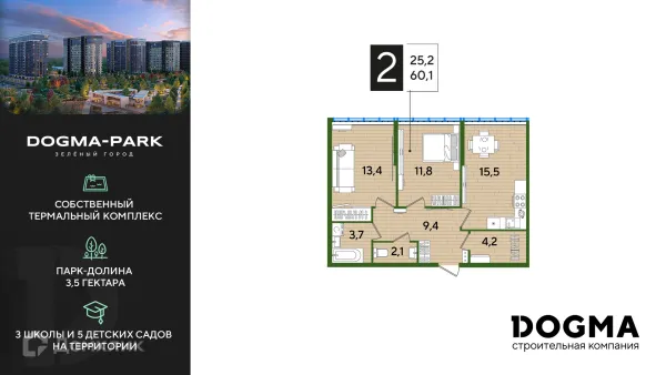 2 комн. квартира в Краснодаре в ипотеку от 63 904 руб/месяц