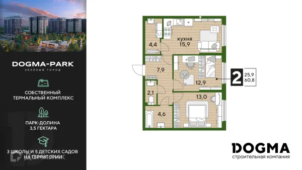 2 комн. квартира в Краснодаре в ипотеку от 64 907 руб/месяц