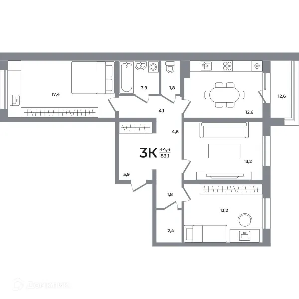 3 комн. квартира в Новосибирске в ипотеку от 86 412 руб/месяц