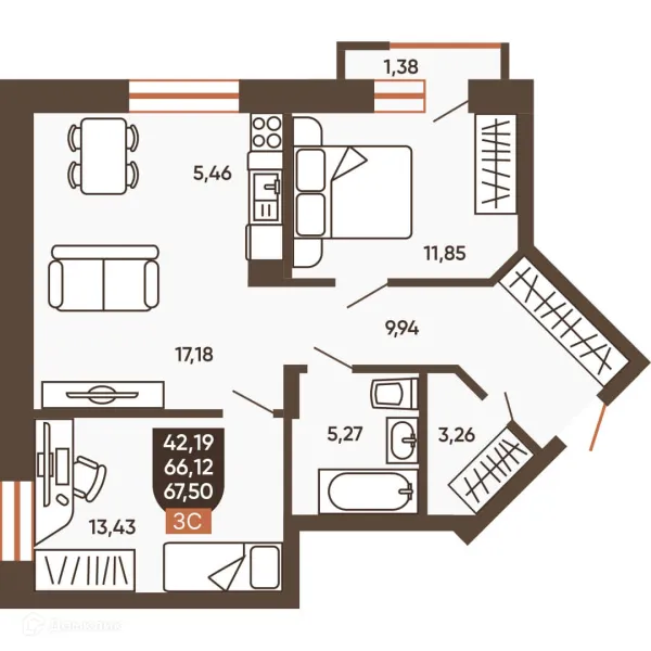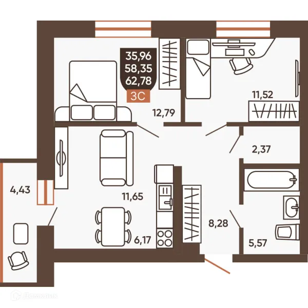 3 комн. квартира в Новосибирске в ипотеку от 54 043 руб/месяц