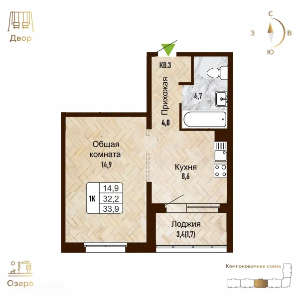1 комн. квартира в Новосибирске в ипотеку от 33 124 руб/месяц