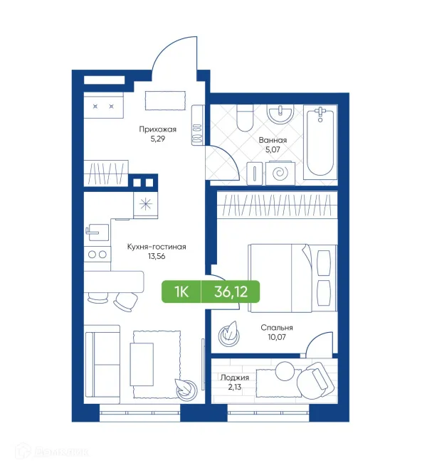 1 комн. квартира в Новосибирске в ипотеку от 40 613 руб/месяц