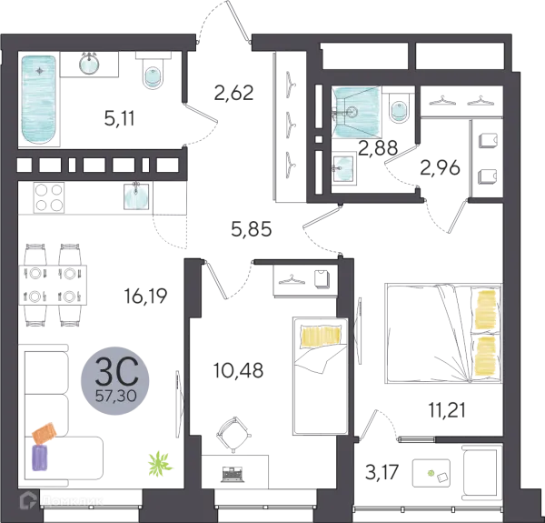 3 комн. квартира в Новосибирске в ипотеку от 104 544 руб/месяц