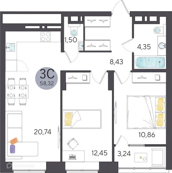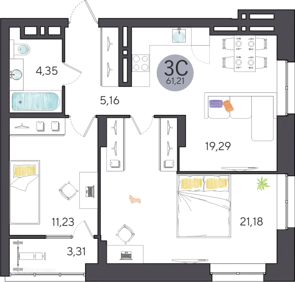 3 комн. квартира в Новосибирске в ипотеку от 129 618 руб/месяц