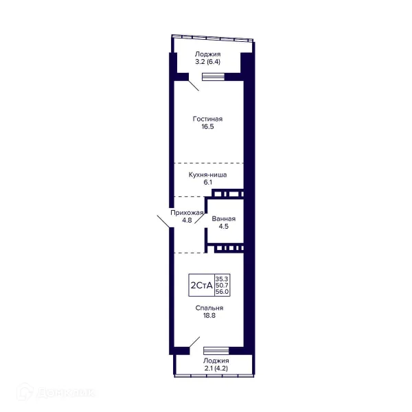 2 комн. квартира в Новосибирске в ипотеку от 54 799 руб/месяц