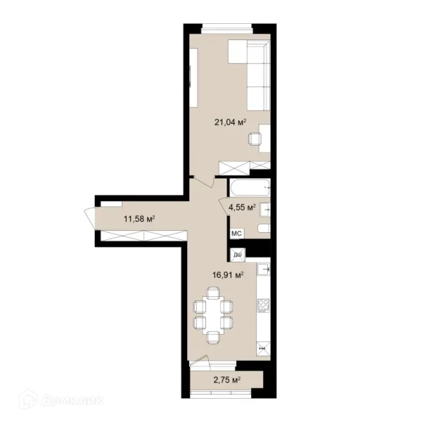 2 комн. квартира в Новосибирске в ипотеку от 66 609 руб/месяц
