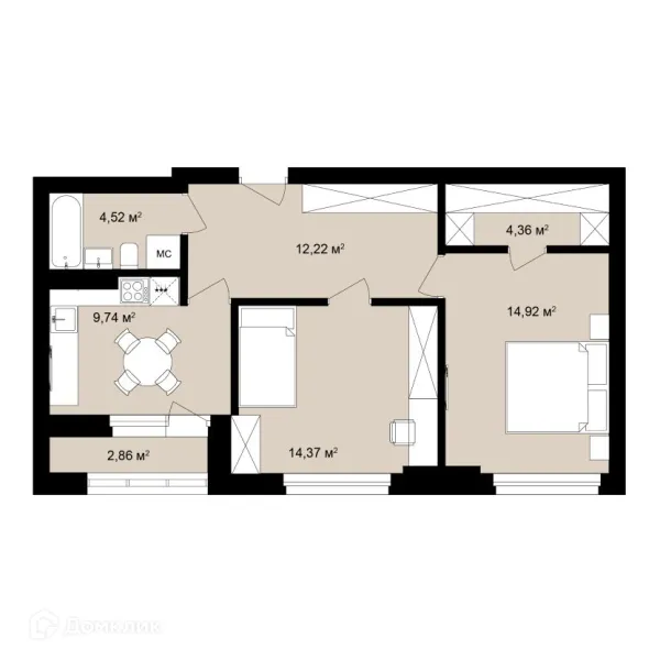2 комн. квартира в Новосибирске в ипотеку от 44 862 руб/месяц