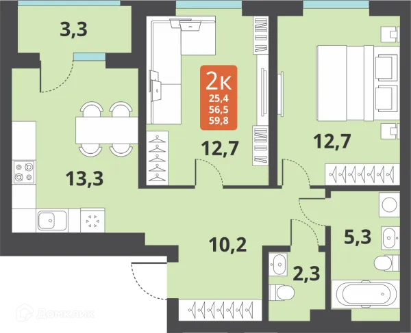 2 комн. квартира в Новосибирске в ипотеку от 56 527 руб/месяц
