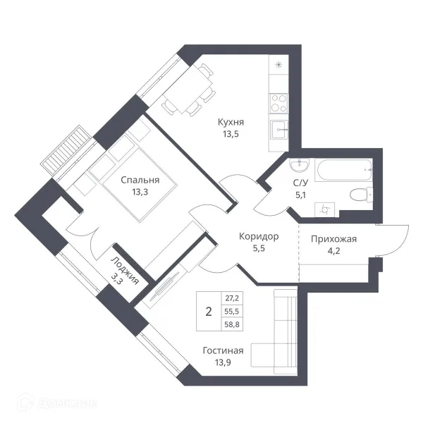 2 комн. квартира в Новосибирске в ипотеку от 55 447 руб/месяц
