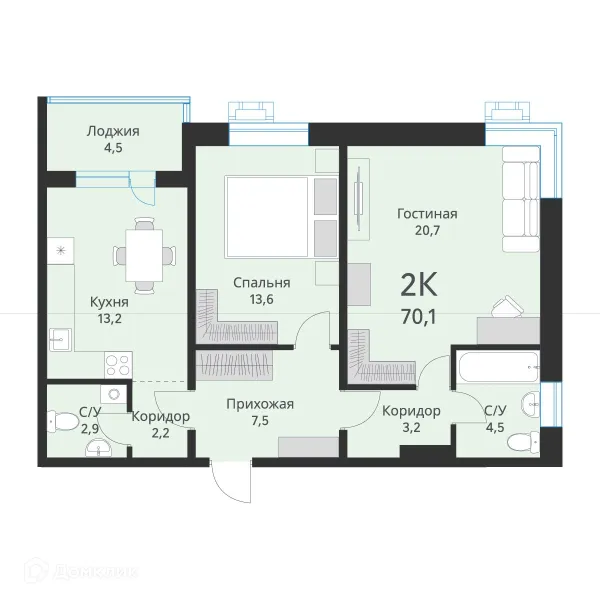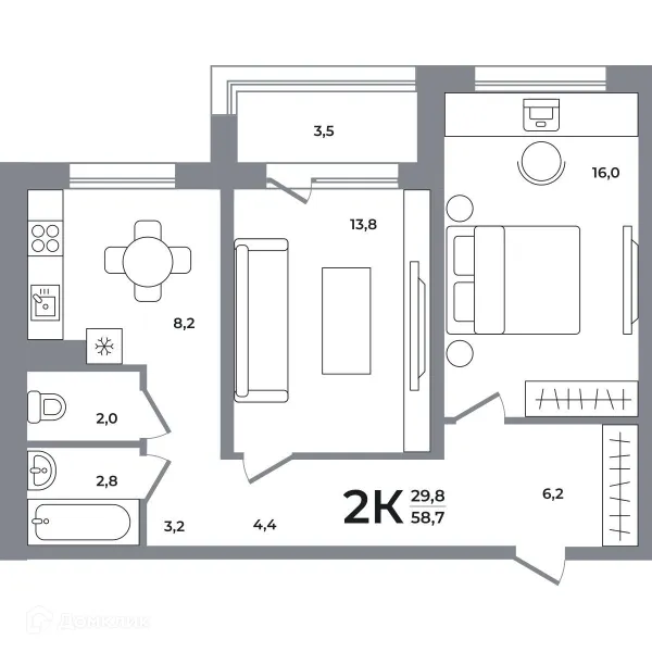 2 комн. квартира в Новосибирске в ипотеку от 68 049 руб/месяц