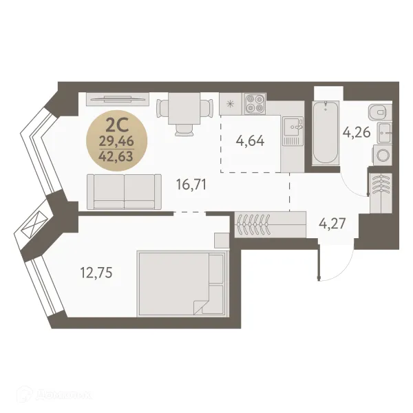 2 комн. квартира в Новосибирске в ипотеку от 39 864 руб/месяц