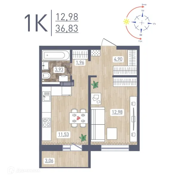 1 комн. квартира в Новосибирске в ипотеку от 30 886 руб/месяц