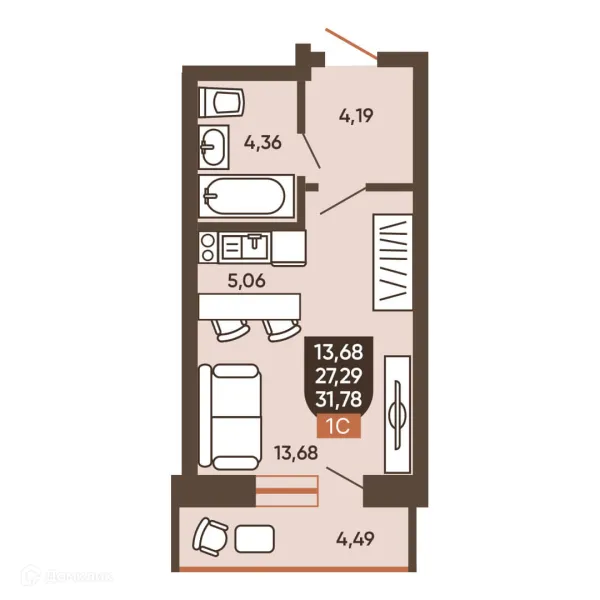 1 комн. квартира в Новосибирске в ипотеку от 27 957 руб/месяц
