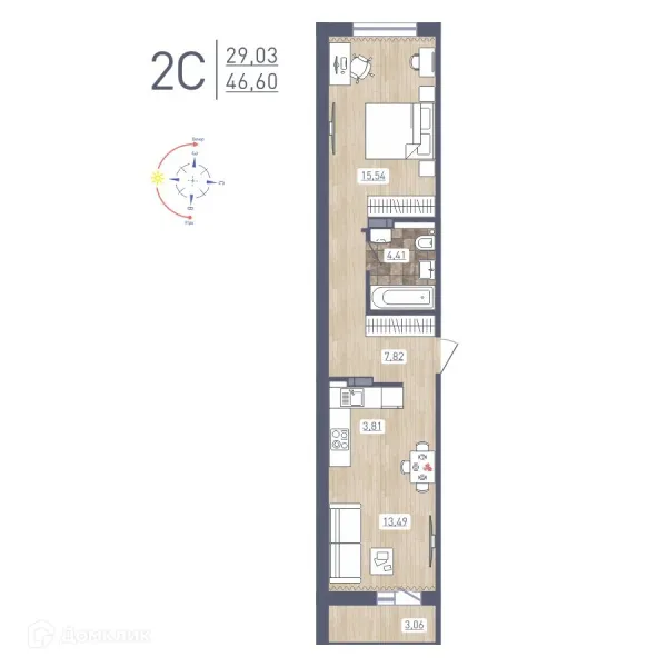 2 комн. квартира в Новосибирске в ипотеку от 44 862 руб/месяц