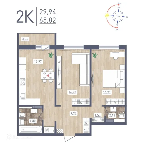 2 комн. квартира в Новосибирске в ипотеку от 65 817 руб/месяц