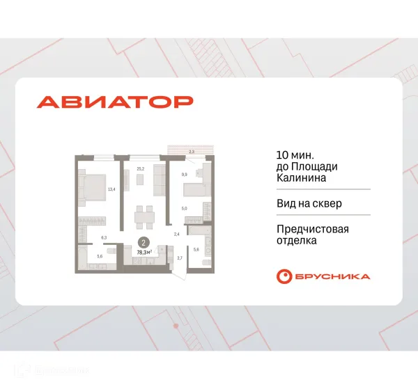 2 комн. квартира в Новосибирске в ипотеку от 91 380 руб/месяц
