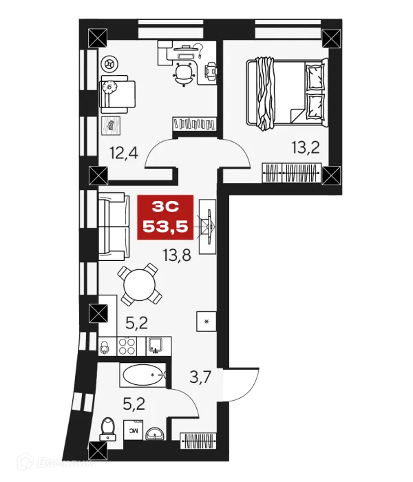 3 комн. квартира в Новосибирске в ипотеку от 90 278 руб/месяц