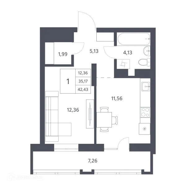 1 комн. квартира в Новосибирске в ипотеку от 35 717 руб/месяц