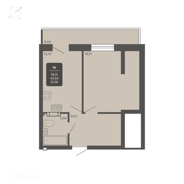 1 комн. квартира в Новосибирске в ипотеку от 52 567 руб/месяц