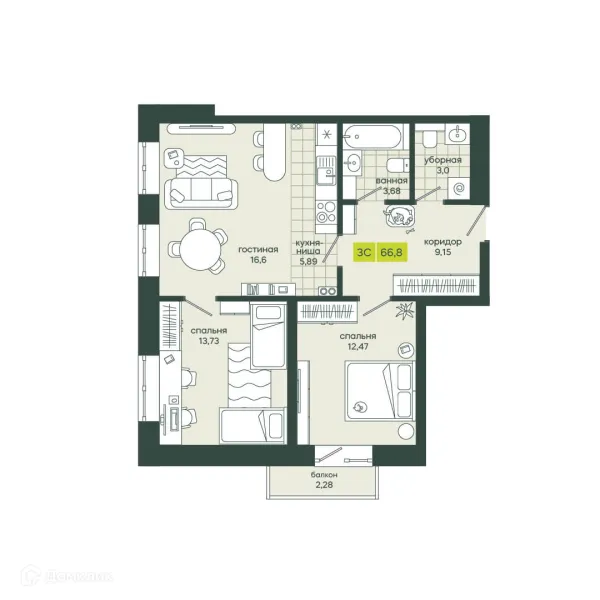 3 комн. квартира в Новосибирске в ипотеку от 61 856 руб/месяц