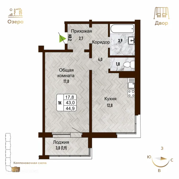 1 комн. квартира в Новосибирске в ипотеку от 41 405 руб/месяц