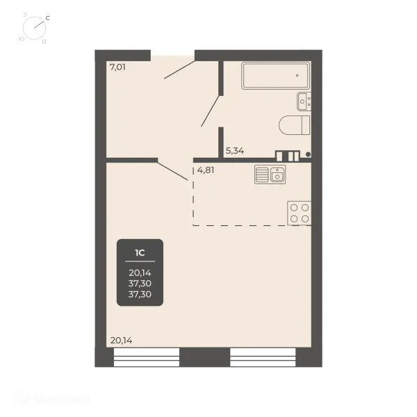 1 комн. квартира в Новосибирске в ипотеку от 37 805 руб/месяц