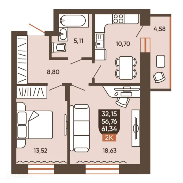 2 комн. квартира в Новосибирске в ипотеку от 61 928 руб/месяц