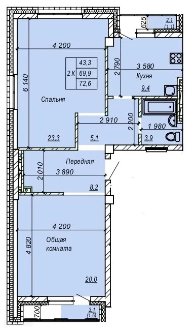 2 комн. квартира в Новосибирске в ипотеку от 106 697 руб/месяц