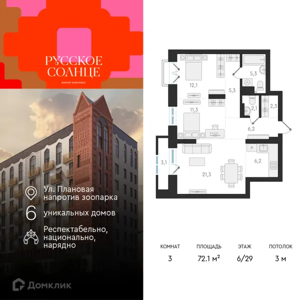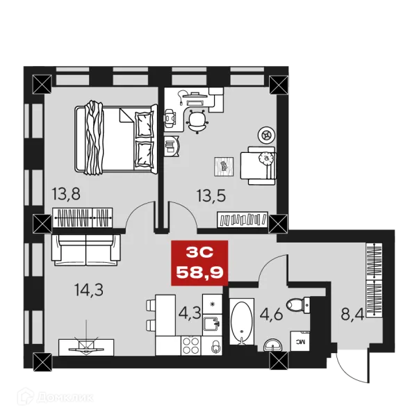 3 комн. квартира в Новосибирске в ипотеку от 118 276 руб/месяц