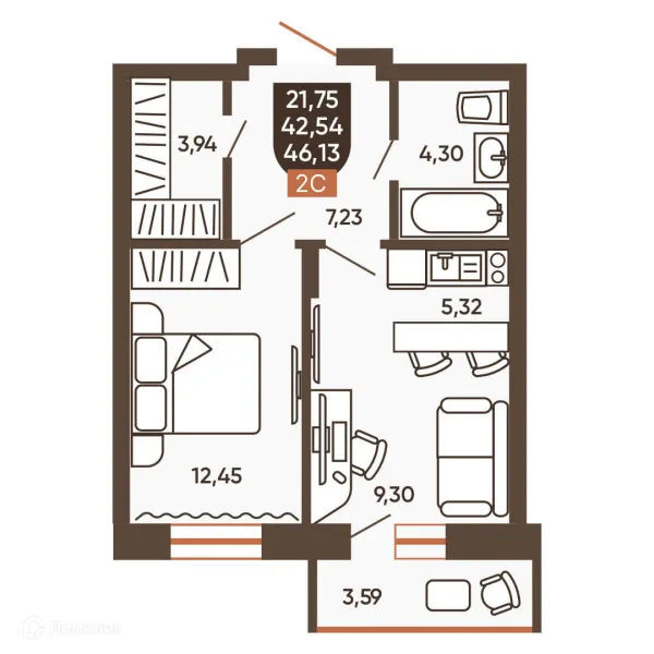 2 комн. квартира в Новосибирске в ипотеку от 45 691 руб/месяц