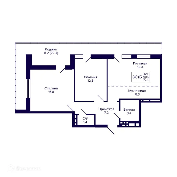 3 комн. квартира в Новосибирске в ипотеку от 75 610 руб/месяц
