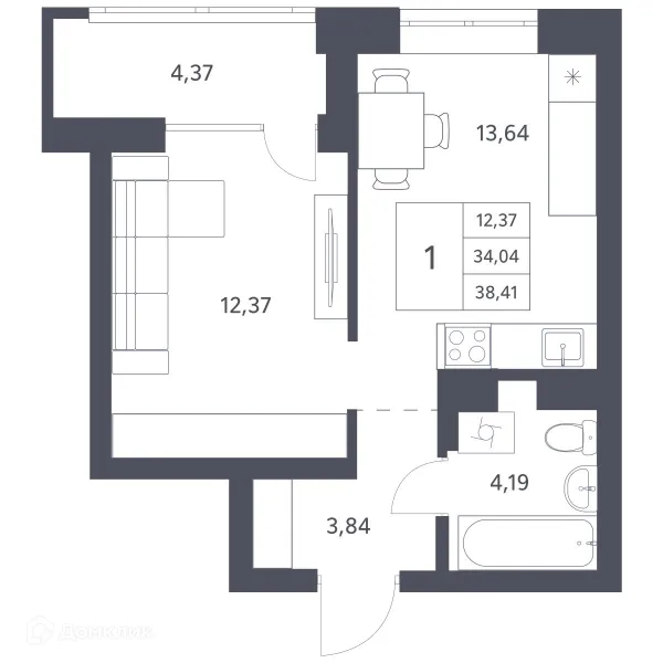 1 комн. квартира в Новосибирске в ипотеку от 38 165 руб/месяц
