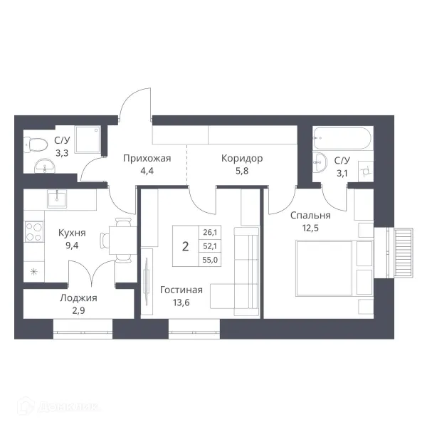 2 комн. квартира в Новосибирске в ипотеку от 48 606 руб/месяц