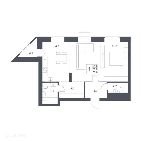 1 комн. квартира в Новосибирске в ипотеку от 55 627 руб/месяц