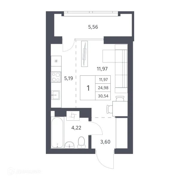 Студия квартира в Новосибирске в ипотеку от 30 604 руб/месяц