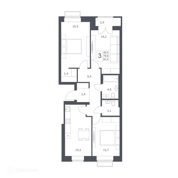 3 комн. квартира в Новосибирске в ипотеку от 59 408 руб/месяц