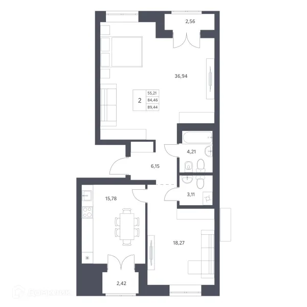 2 комн. квартира в Новосибирске в ипотеку от 61 640 руб/месяц