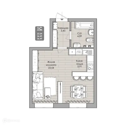1 комн. квартира в Новосибирске в ипотеку от 46 590 руб/месяц