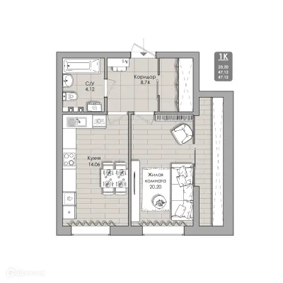 1 комн. квартира в Новосибирске в ипотеку от 47 382 руб/месяц
