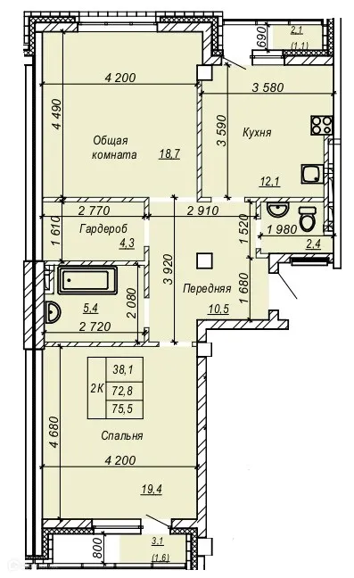 2 комн. квартира в Новосибирске в ипотеку от 55 454 руб/месяц