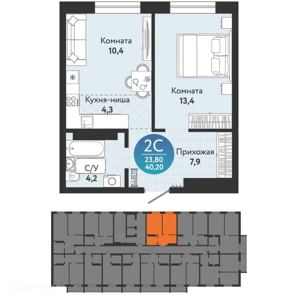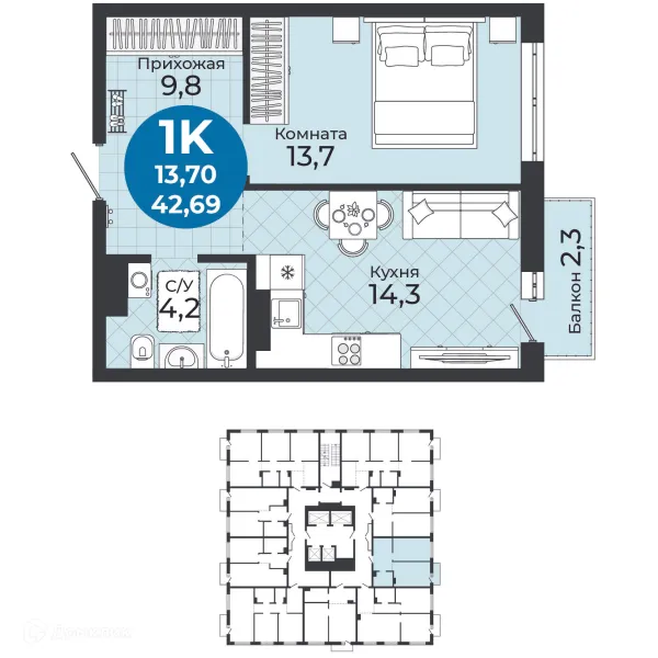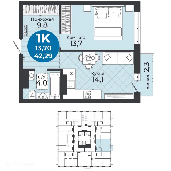 1 комн. квартира в Новосибирске в ипотеку от 34 151 руб/месяц