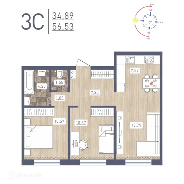 2 комн. квартира в Новосибирске в ипотеку от 34 246 руб/месяц