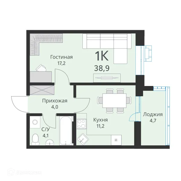 1 комн. квартира в Новосибирске в ипотеку от 57 161 руб/месяц